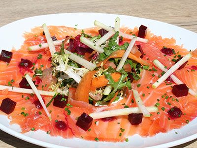 Agrémentez votre saumon gravlax de petites lamelles de pomme Granny Smith.
