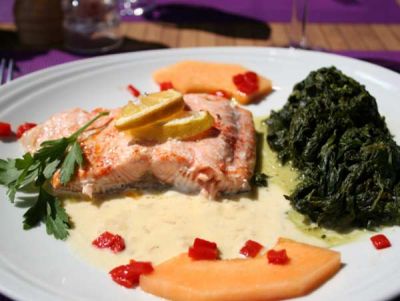 Si Alexandra CAZALIS peut satisfaire toute envie d’un plat spécial (sur réservation), carte et ardoise offrent un très beau choix quotidien. Le plat du jour comme celui-ci, vous sera proposé certains vendredis.