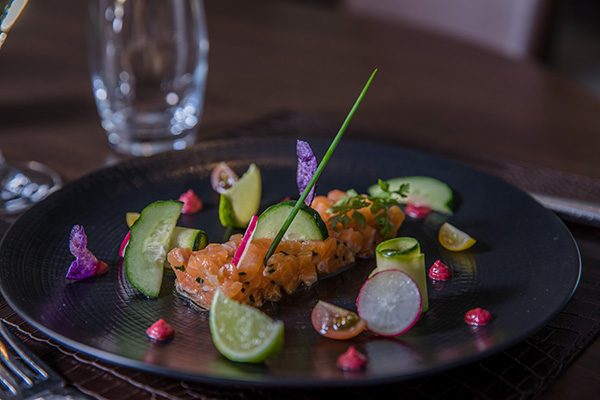 Dans une salle donnant sur le jardin, l’étang et la terrasse, le Chef Christophe Belmonte concocte des plats entièrement faits maison qui subliment le beau terroir landais.