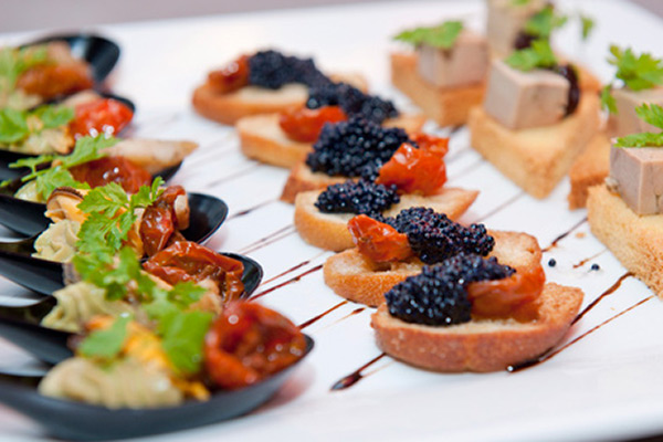 - Cromesquis de canard, crème de foie gras et pignons torréfiés