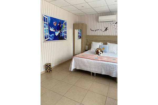 L’hôtel familial compte 16 chambres climatisées à thème entièrement rénovées, dont une accessible aux personnes à mobilité réduite.