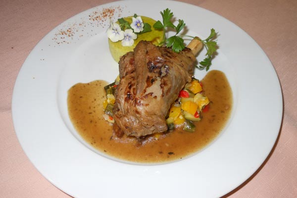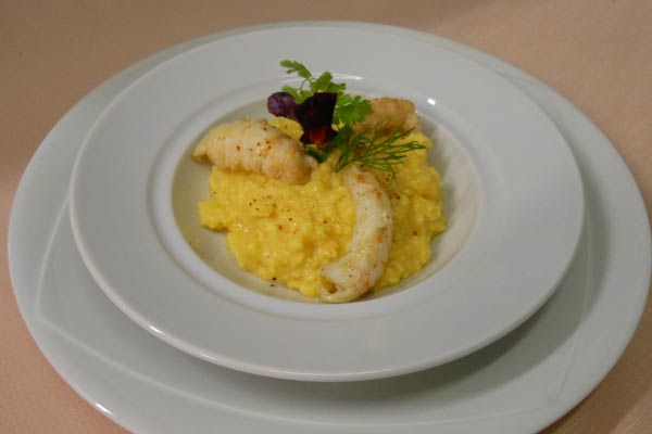 • Plats : Noix de St Jacques flambées au Patxaran, blanquette de lotte et riz safrané, tête de veau sauce aromatique, filet de boeuf et galette de Pomme de terre.