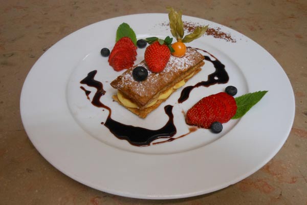 • Desserts : Moelleux au chocolat, crème brûlée.