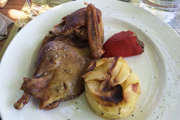 - Caneton demi-sauvage confit par nos soins, pommes campagnardes